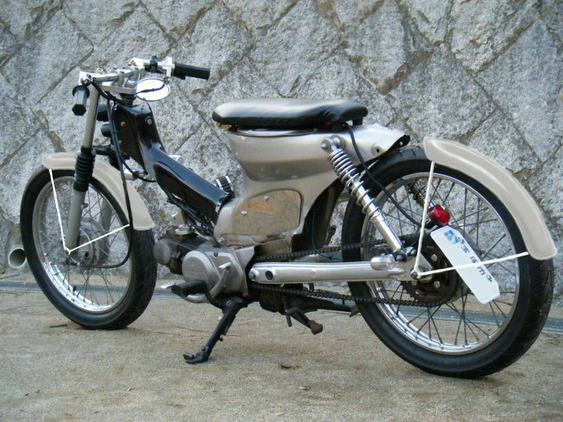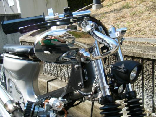 カブヨシさんは純正加工ミニフェンダーと縦2連ミニビームでなんだかサイバーな感じに。